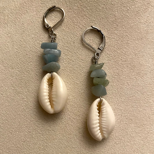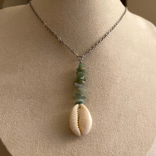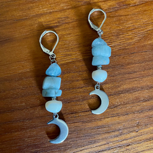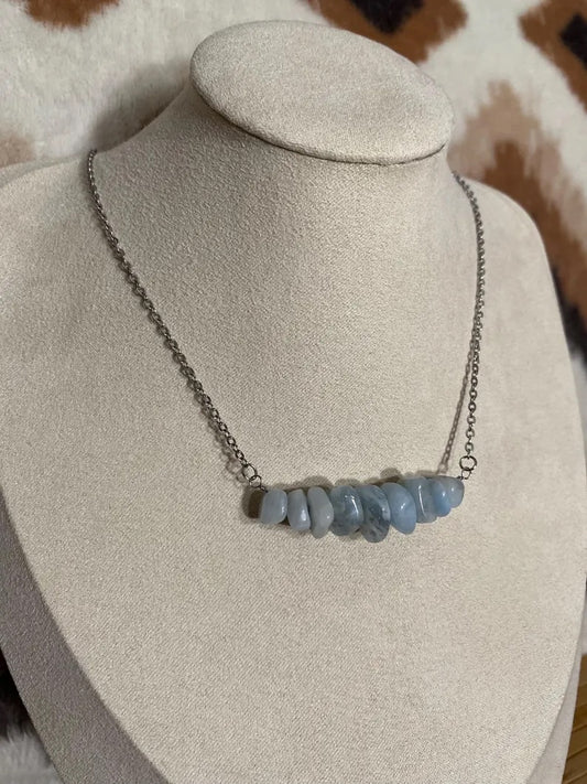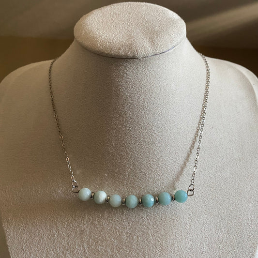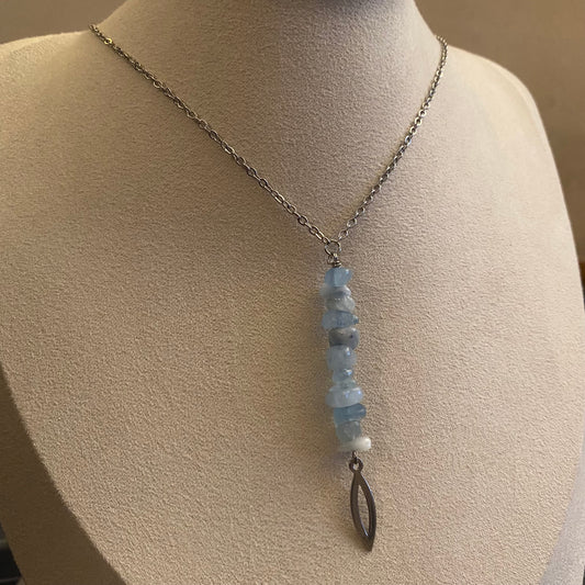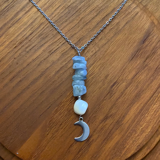 Aquamarine, Mother of Pearl Celestial Necklace.