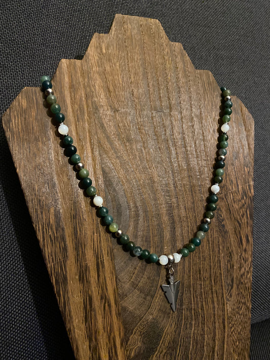Arrowhead & Moss Agate Necklace w/ MOP accent beads