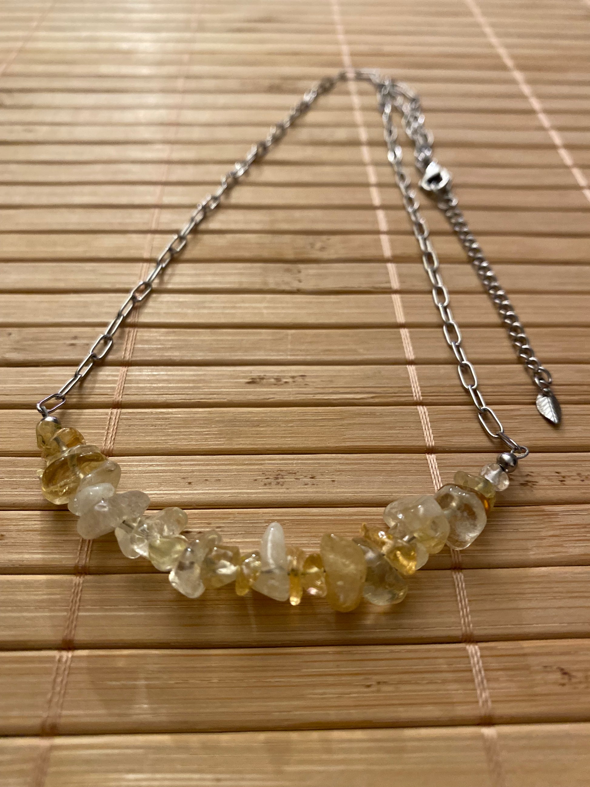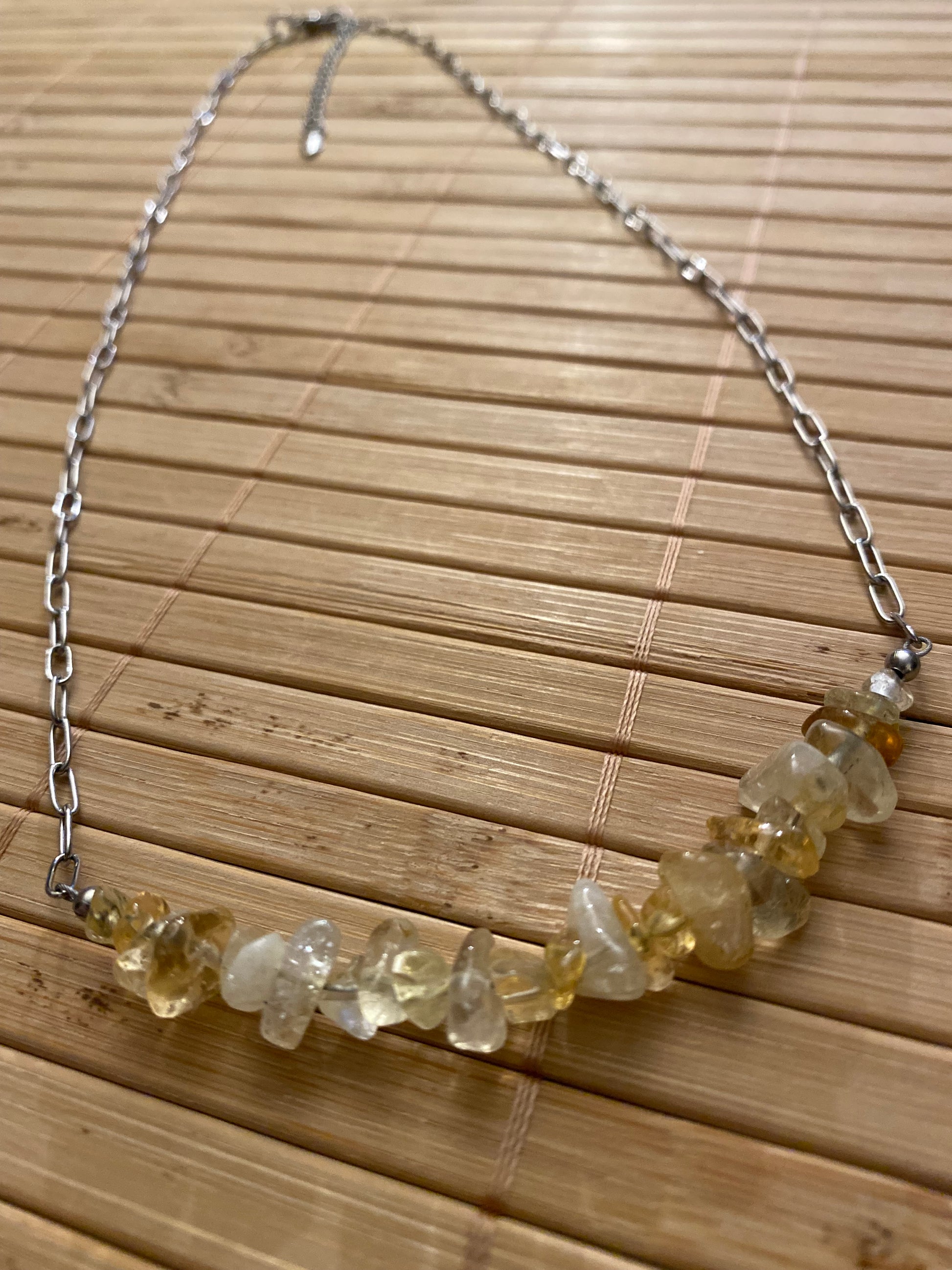 Citrine chip bead necklace with stainless steel paper clip chain and findings. 19.5 inch length with 2 inch extender.